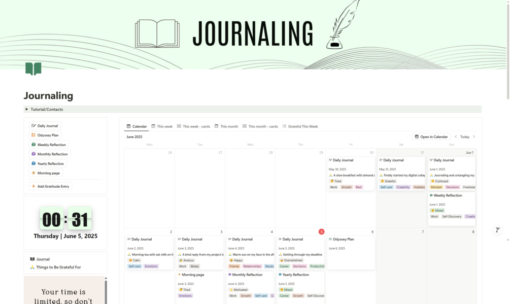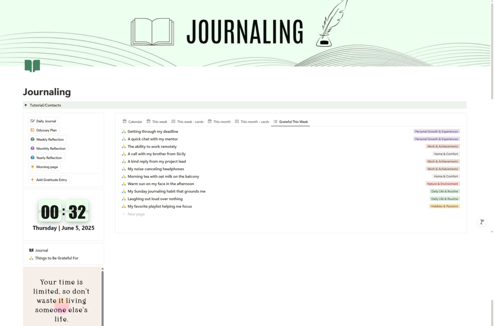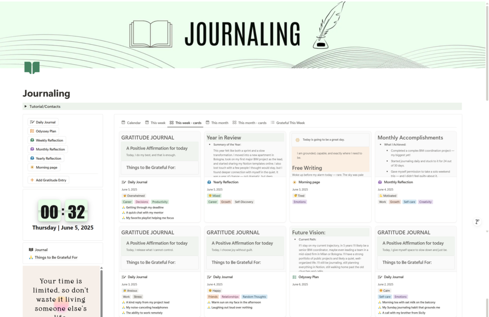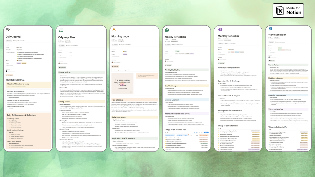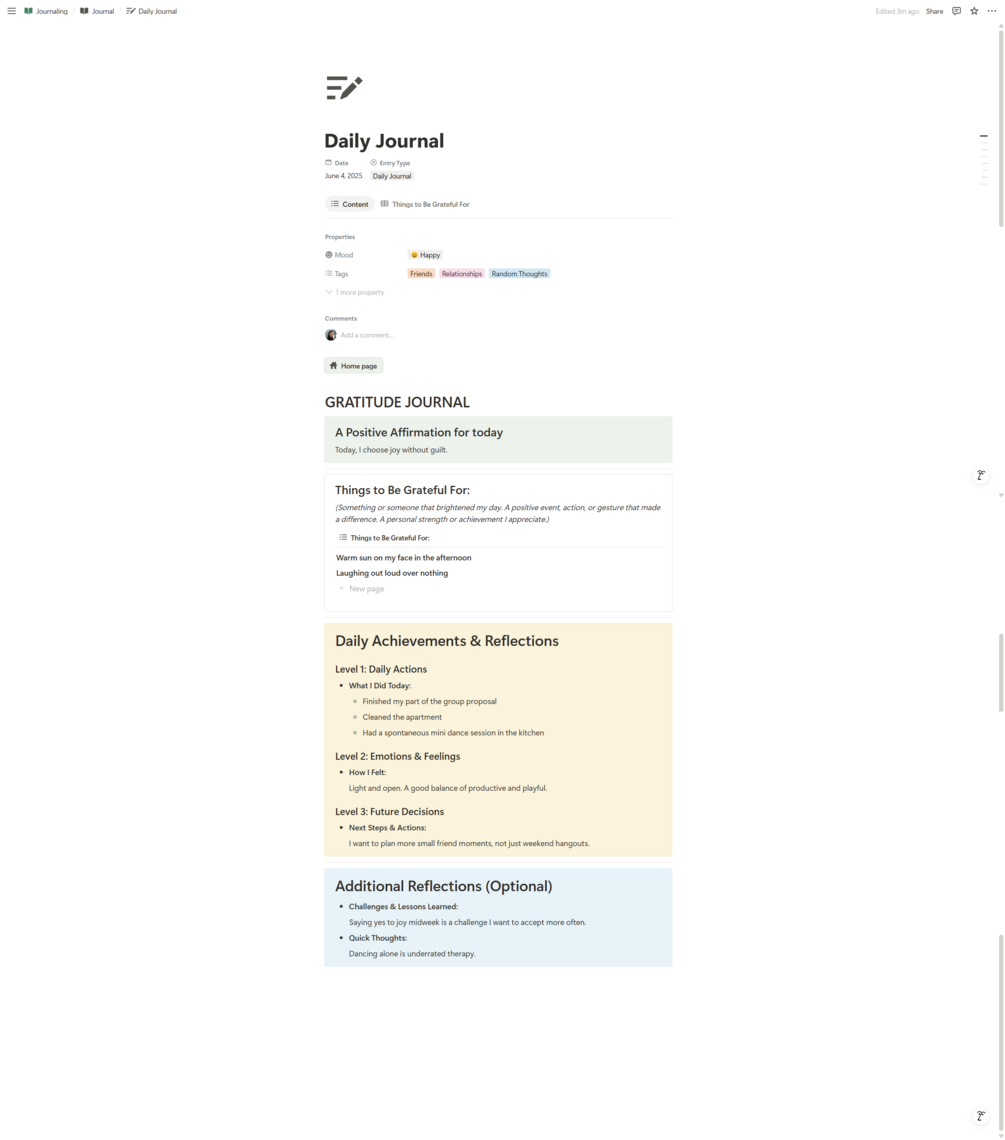 A structured digital journal in Notion to organize your thoughts, capture memories, and start each day with clarity and intention.